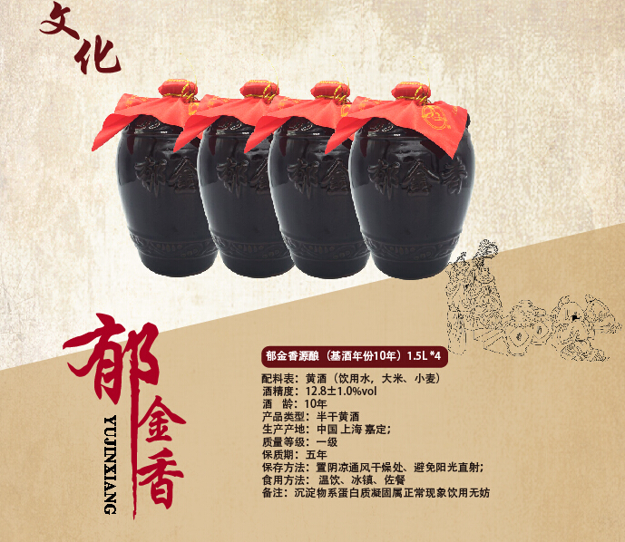 郁金香酒已有300多年歷史,1937年曾榮獲德國“萊比錫博覽會”國際金獎,1990年榮獲中國“春夏市場”************商品“金奔馬獎”。2007年,在嘉定區(qū)政府的重視下,由嘉定區(qū)供銷社重新建廠恢復(fù)生產(chǎn)“仙鶴牌”郁金香酒。該酒是由宜興竹海山泉和上等白元糯米釀制而成的十年陳黃酒,因其“古法釀制”的特殊性,2009年,郁金香酒釀造技藝被列入上海市非物質(zhì)文化遺產(chǎn)名錄。2014年,仙鶴牌郁金香酒被市商委授予“上海老字號”稱號。