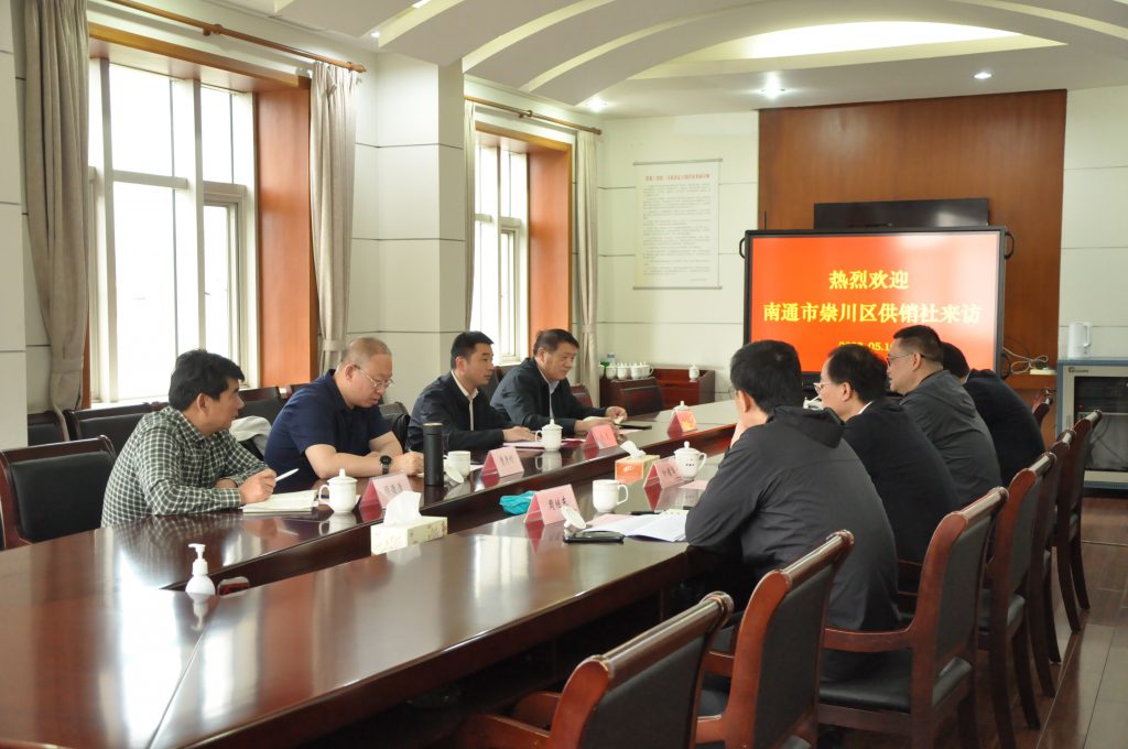 5月10日下午,由南通市崇川區(qū)供銷合作總社主任賈彥利帶隊(duì),一行4人來新嘉集團(tuán)(區(qū)供銷社)開展考察調(diào)研。新嘉集團(tuán)(區(qū)供銷社)黨委書記、新嘉集團(tuán)董事長、區(qū)供銷社理事會(huì)主任汪巍忠,新嘉集團(tuán)(區(qū)供銷社)黨委副書記、新嘉集團(tuán)總經(jīng)理、區(qū)供銷社理事會(huì)常務(wù)副主任印耀華等參與調(diào)研。