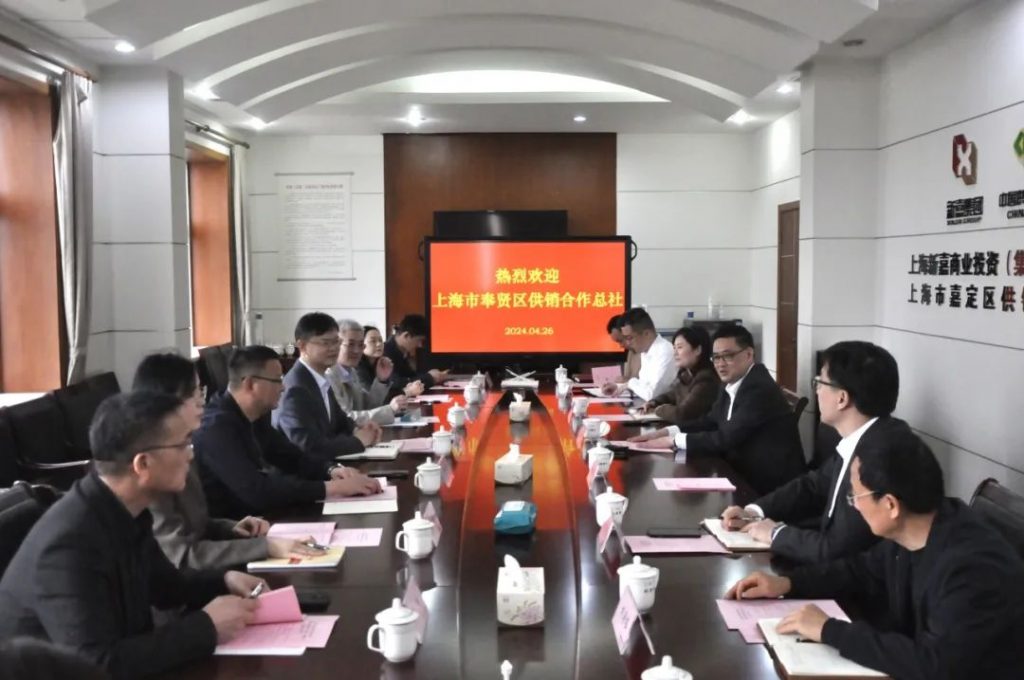 4月26日,上海奉賢經(jīng)濟(jì)發(fā)展有限公司黨委書(shū)記、董事長(zhǎng)、奉賢供銷社主任汪春元,上海奉賢經(jīng)濟(jì)發(fā)展有限公司黨委副書(shū)記、總經(jīng)理金季平帶隊(duì)一行10人來(lái)新嘉集團(tuán)(嘉定供銷社)考察調(diào)研。