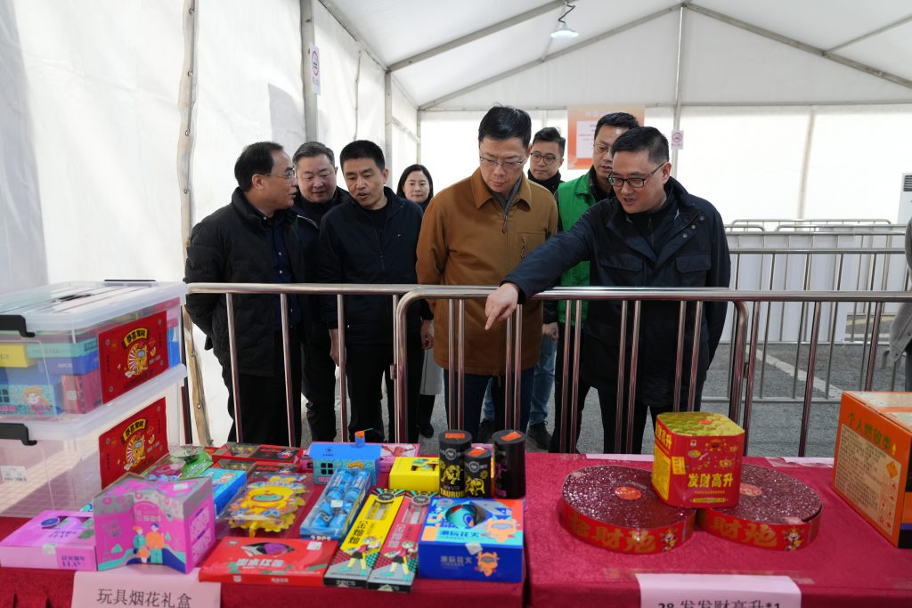 吳杰首先在惠民公司煙花爆竹銷售點(diǎn)現(xiàn)場(chǎng)查看了煙花爆竹銷售、儲(chǔ)存等情況,隨后在永盛里商業(yè)街區(qū)聽取了新嘉集團(tuán)(區(qū)供銷社)老廠房改造和招商相關(guān)工作進(jìn)展。