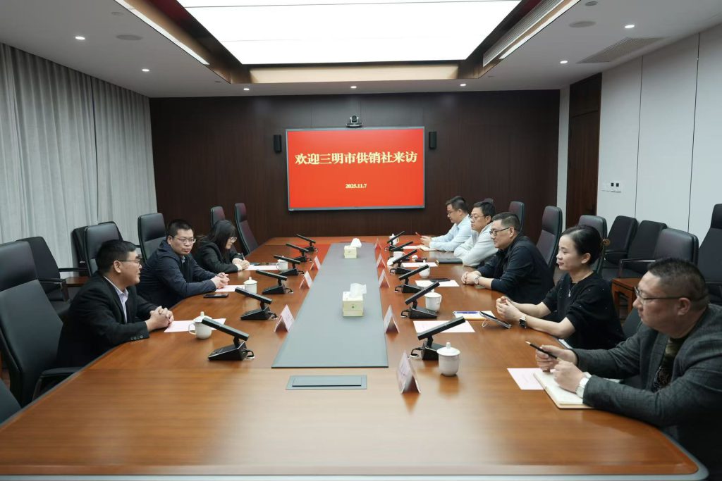 11月7日,三明市供銷(xiāo)合作社聯(lián)合社黨組書(shū)記、主任夏壽南一行來(lái)新嘉集團(tuán)(嘉定供銷(xiāo)社)座談交流。